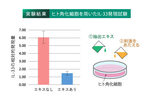 バリア機能が低下した角層は、外的刺激を受けた際に増えるタンパク質(IL-33)が常に過剰な状態であることがわかっています。