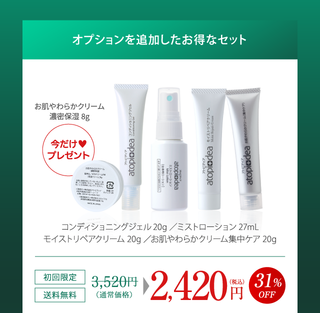 - アトピディアの公式通販サイト「アトピーケア」のご利用が初めてのお客様限定(1世帯1回限り)とさせて頂きます。