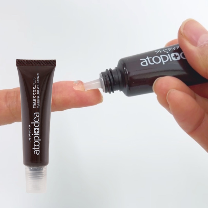 とくに敏感な状態が強い場合は、最初に「竹酢液でできたジェル」を少量塗布して浸透してから、「お肌やわらかクリーム集中ケア」を塗布します。